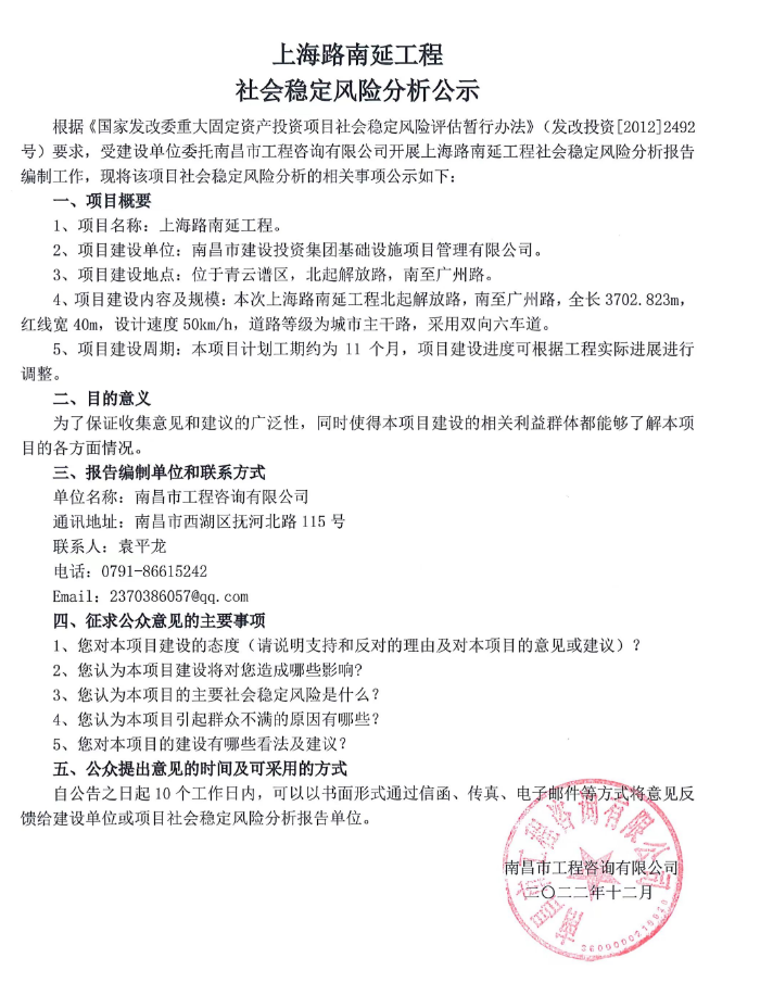 上海路南延工程社会稳固危害剖析公示